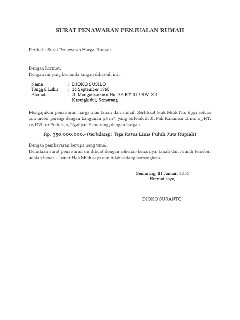 Saya sempat kelimpungan mencari contoh surat penawaran rumah dan tanah ini ketika ada calon pembeli yang berminat. 3.790 m2 status tanah : Hal ini perlu anda sampaikan dalam surat penawaran. Atau barangkali ada diantara kalian yang masih bingung. Kumpulan contoh surat penawaran mulai dari surat penawaran resmi, jasa, barang, kerjasama berserta dengan pengertian dan struktur surat penawaran.